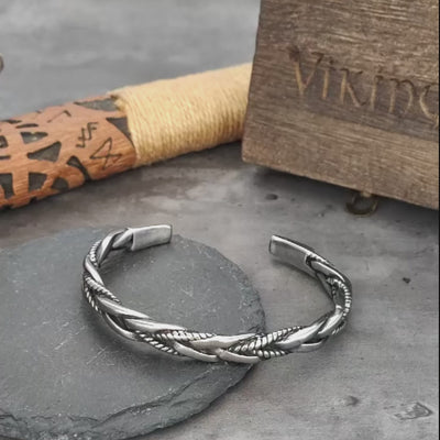 Inspirado nas armadilhas do mar e nos símbolos de proteção dos antigos nórdicos, este bracelete traz um design trançado que representa união, resiliência e força interior.